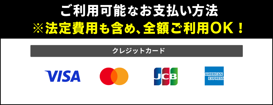 ※法定費用も含み全額クレジットカードでお支払い頂けます!